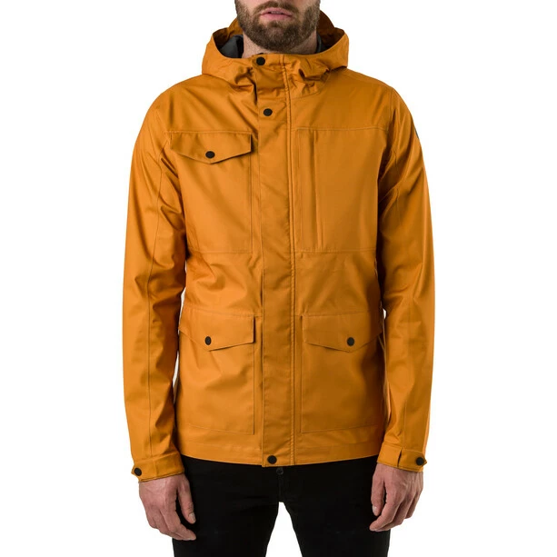 Eine robuste Jacke aus 2,5-Lagen-Material, die sich für jeden Einsatz eignet. Diese Jacke ist dank der speziell von AGU entwickelten Poray 5.000 Membrane wind- und wasserdicht. Um Wind und Regen extra gut abzuhalten, ist die Jacke mit geklebten Nähten und einer Sturmklappe versehen, die vorne über den Reißverschluss fällt. Wie der Name schon verrät, wurden zusätzliche Taschen in das Design integriert, um alles mit auf die Reise zu nehmen. Die Vorderseite hat vier Taschen, es gibt eine Innentasche und sogar auf der Rückseite befindet sich, fast unsichtbar, unten links eine Tasche, die mit einem Reißverschluss geschlossen werden kann. Der verlängerte Rücken sorgt dafür, dass Spritzwasser optimal abgehalten wird. Die Kapuze ist mit einem speziellen Visier ausgestattet, das beim Schulterblick auf dem Fahrrad nicht stört. Durch eine elastische Kordel mit Stopper kann die Kapuze nach Belieben stufenlos eingestellt werden. An den Ärmeln kann die Weite mit zwei Druckknöpfen eingestellt werden.